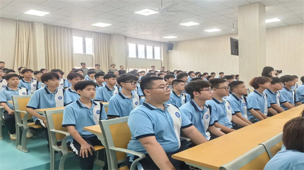 校團委副書記劉超老師以退伍軍人身份,為新生帶來了一堂生動的國防教育課。“抗戰(zhàn)精神從未過時,它早已融入我們每個人的責任與擔當之中?!眲⒗蠋熃Y合自身軍旅經歷,通過部隊訓練、執(zhí)行任務等真實故事,將“不畏強暴、血戰(zhàn)到底”的抗戰(zhàn)精神與當代青年的技能成才使命相銜接。