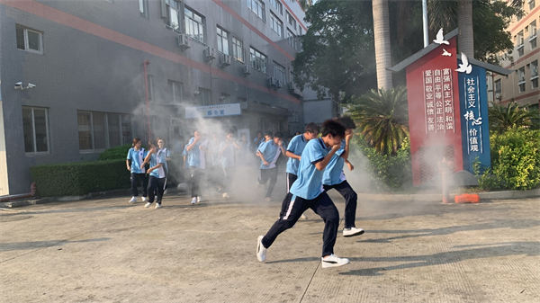 下午3時(shí),消防警報(bào)劃破長(zhǎng)空,橙色煙霧模擬火場(chǎng)環(huán)境迅速?gòu)浡堑?。在軍?xùn)教官和學(xué)工處老師的聯(lián)合組織下,同學(xué)們迅速用濕毛巾捂住口鼻,低姿彎腰沿墻前行,按照預(yù)定疏散路線快速向開闊地帶轉(zhuǎn)移。整個(gè)過(guò)程中,同學(xué)們沉著冷靜、動(dòng)作規(guī)范,快速有序疏散,安全抵達(dá)集結(jié)區(qū)域,展現(xiàn)出良好的紀(jì)律意識(shí)和協(xié)作能力。