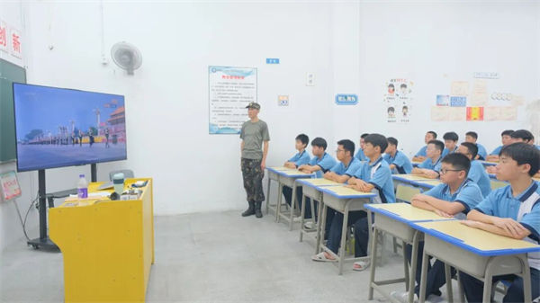 校團委副書記劉超老師以退伍軍人身份,為新生帶來了一堂生動的國防教育課?!翱箲?zhàn)精神從未過時,它早已融入我們每個人的責(zé)任與擔(dān)當(dāng)之中。”劉老師結(jié)合自身軍旅經(jīng)歷,通過部隊訓(xùn)練、執(zhí)行任務(wù)等真實故事,將“不畏強暴、血戰(zhàn)到底”的抗戰(zhàn)精神與當(dāng)代青年的技能成才使命相銜接。