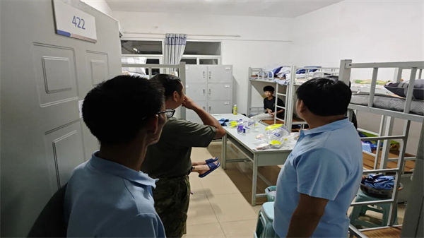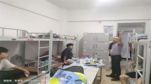 晚上8時(shí)許,學(xué)校領(lǐng)導(dǎo)班子成員、中層干部和各班班主任齊聚學(xué)生公寓樓前。在簡單布置工作后,老師們分成若干小組,深入各棟宿舍樓,逐一走訪每間新生寢室。